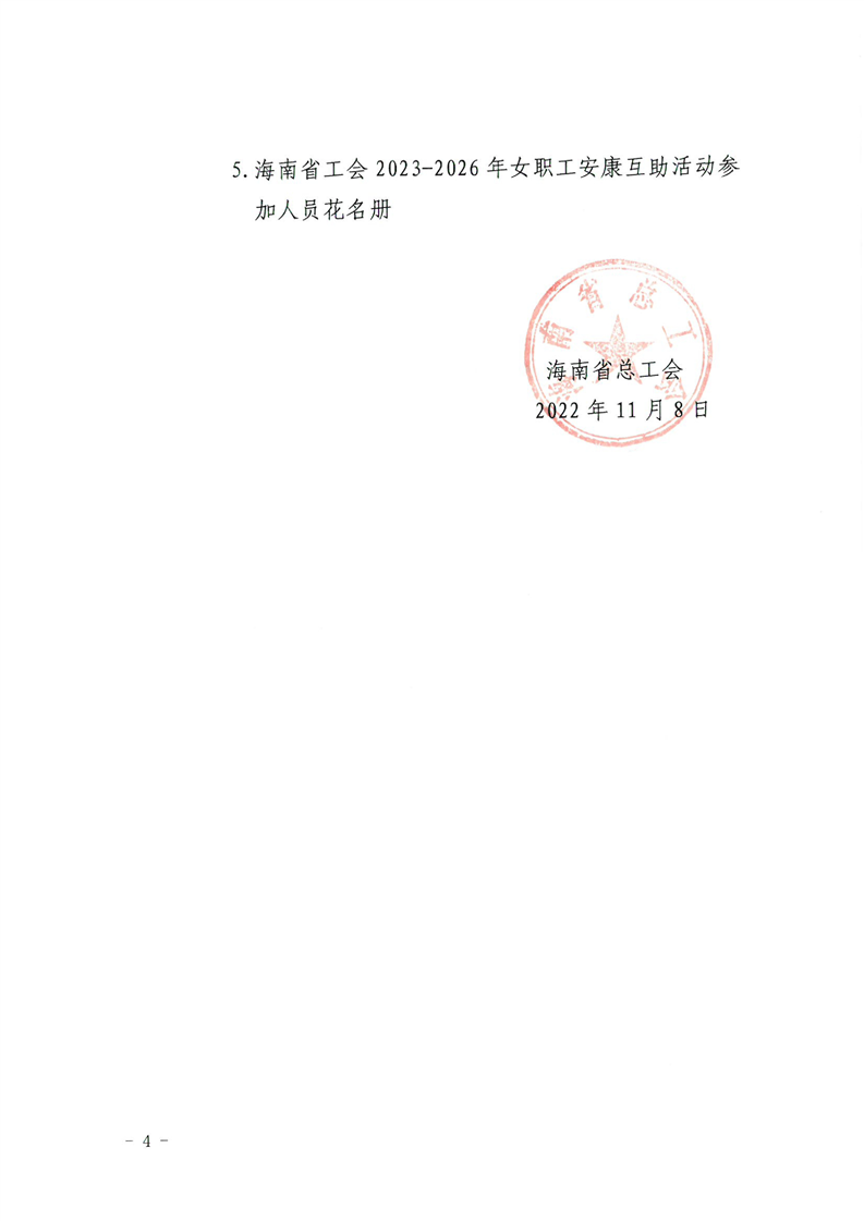 关于开展海南省工会2023-2026年女职工安康互助活动的通知( 琼工发〔2022〕23号)