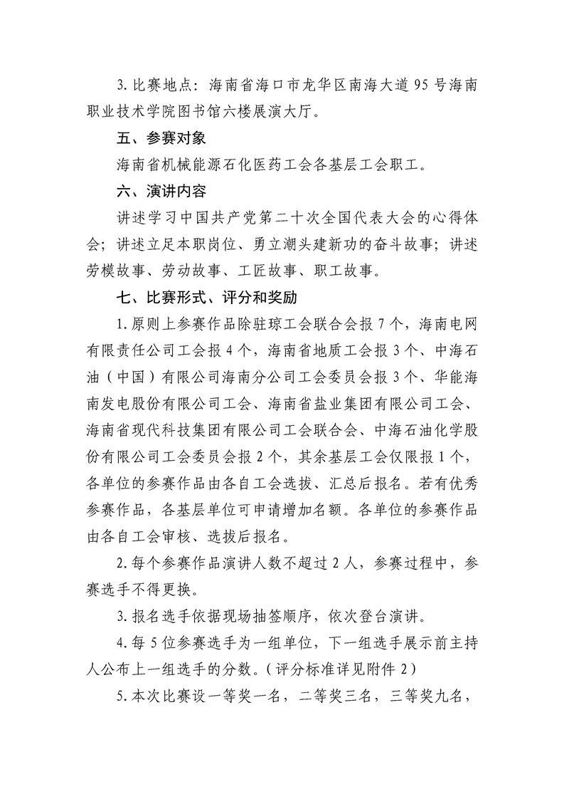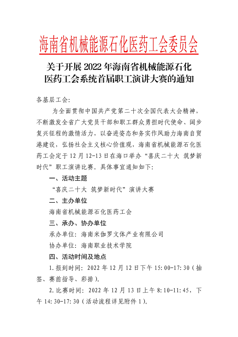 关于开展2022年海南省机械能源石化医药工会系统首届职工演讲大赛的通知
