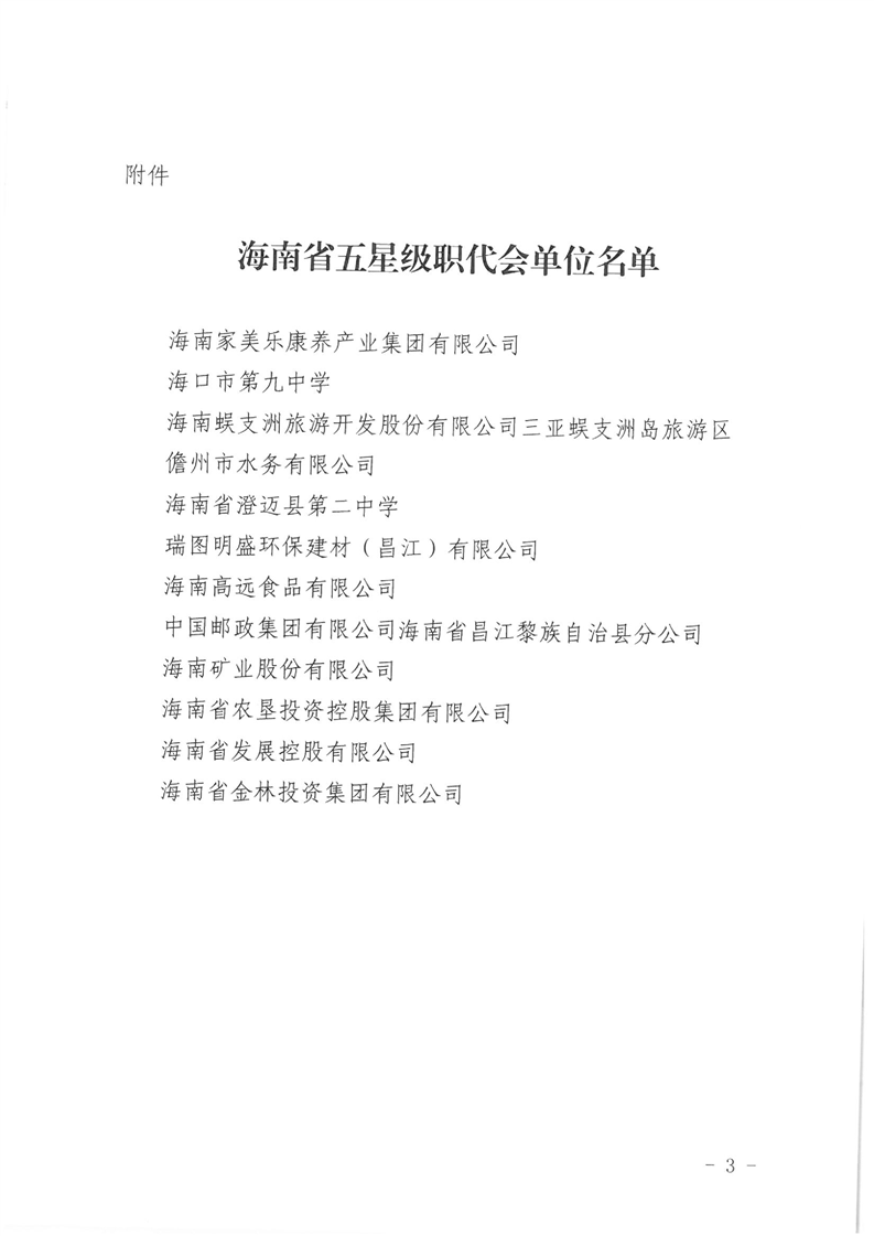 关于命名海南省五星级职代会的决定(琼工办发〔2023〕2号)