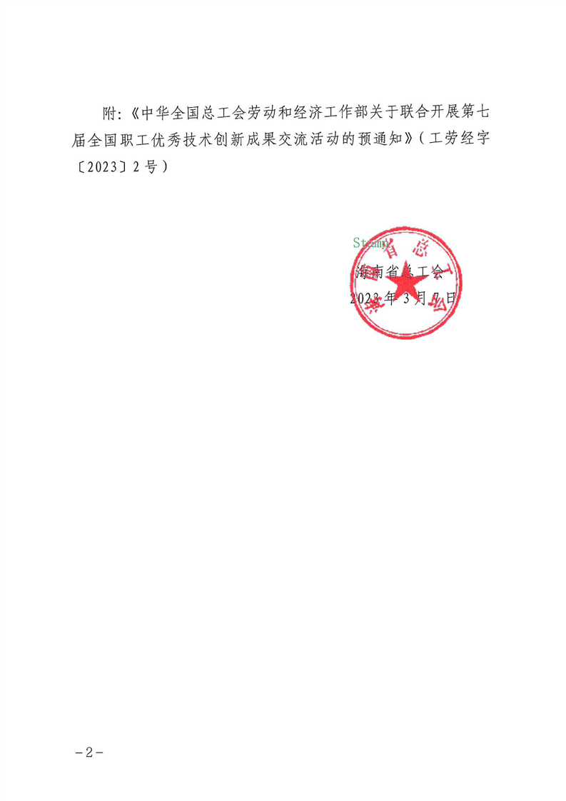 关于联合开展第七届全国职工优秀技术创新成果交流活动的通知(总工字〔2023〕18号)