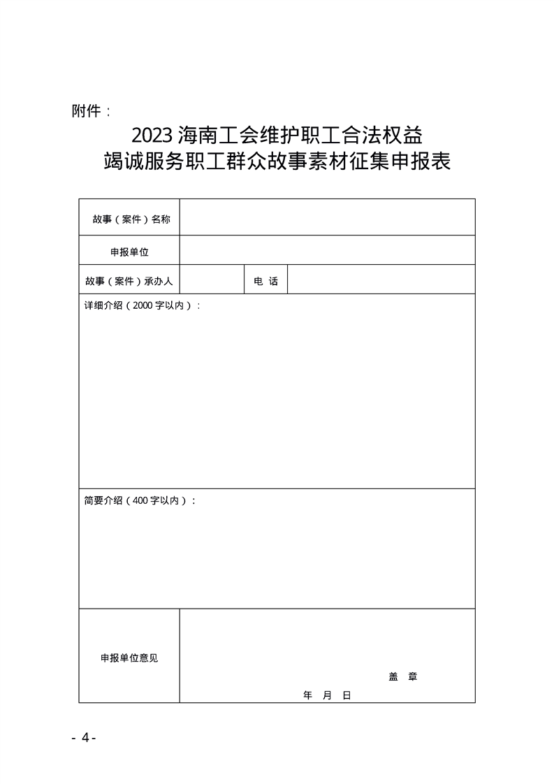 关于征集海南工会维护职工合法权益竭诚服务职工群众故事素材的通知